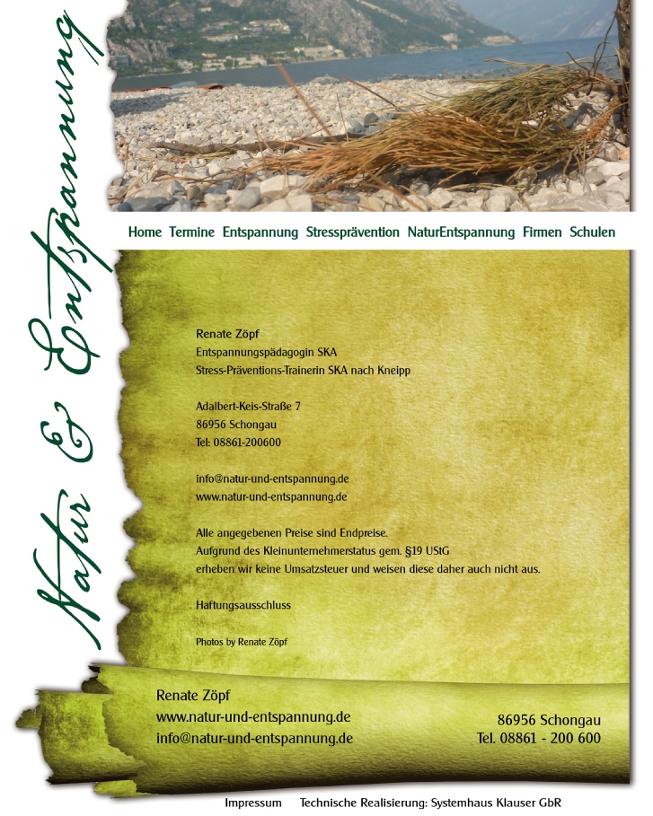 Home termine entspannung stresspraevention naturentspannung firmen schule E-Mail: info@natur-und-entspannung.de impressum E-Mail: info@natur-und-entspannung.de Technische Realisierung: fiedler-IT