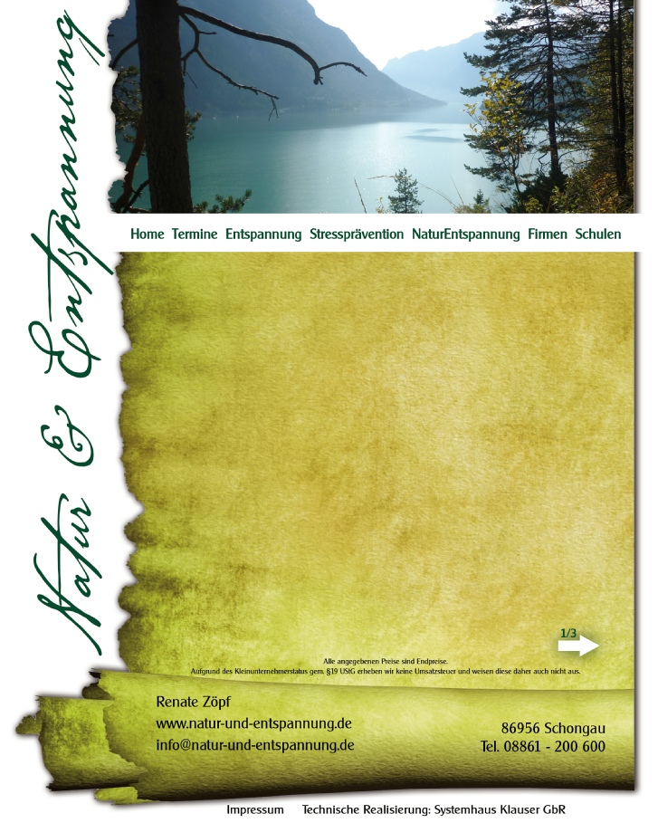 Home termine entspannung stresspraevention naturentspannung firmen schule E-Mail: info@natur-und-entspannung.de impressum Technische Realisierung: fiedler-IT